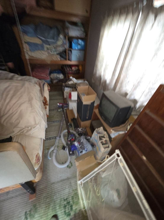 室内には多くの家財や生活用品があり、作業スペースの確保からのスタート。